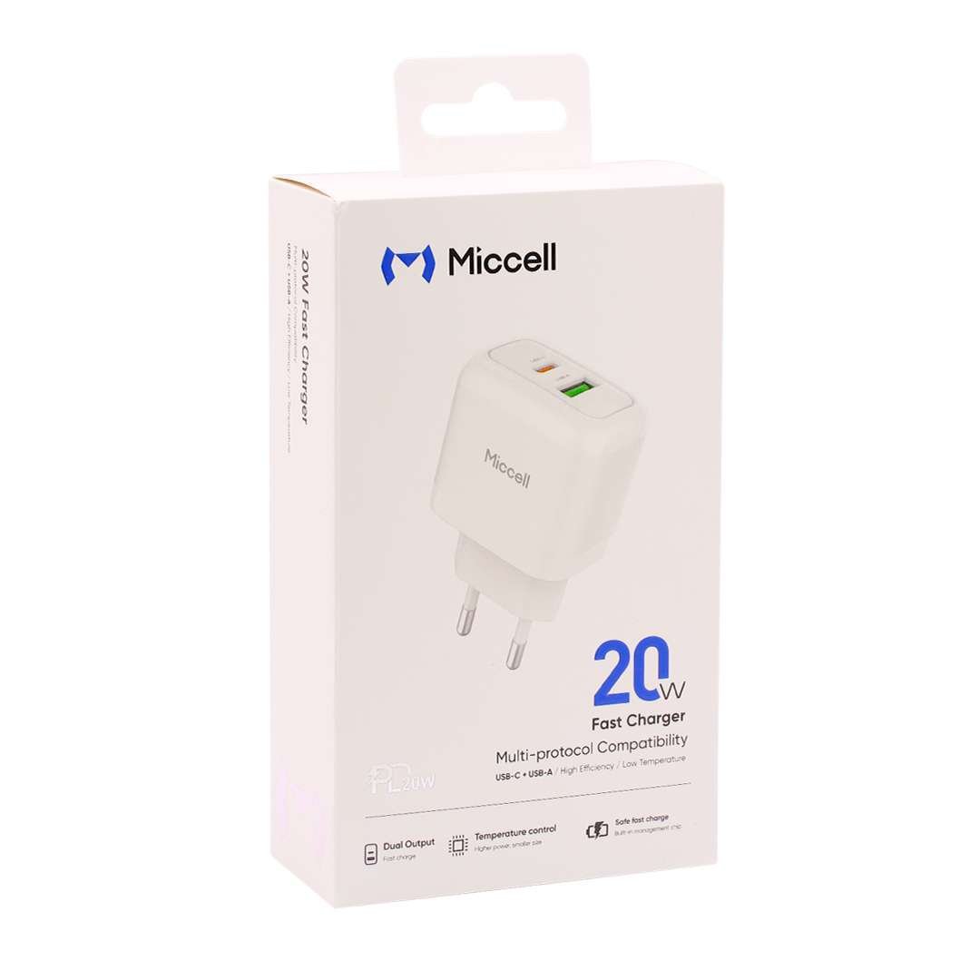 CARGADOR MICCELL RAPIDO USB-C PD 20W + USB 3.0 T12