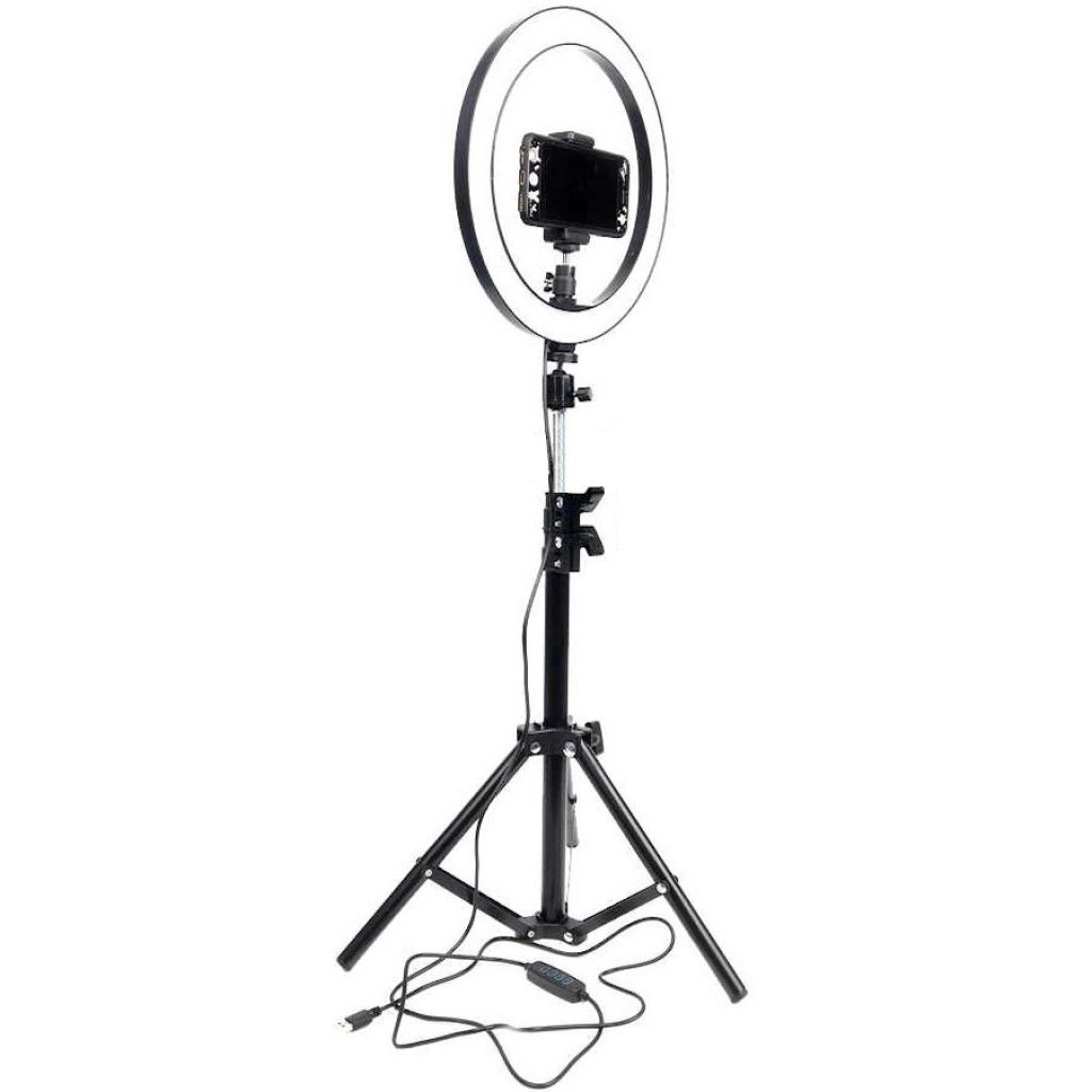 Ilumina tus fotos y videos con el Trípode Anillo de Luz LED 26 cm, ideal para creadores de contenido, transmisiones en vivo, maquillaje y videollamadas. Su diseño práctico y ajustable garantiza una iluminación uniforme y profesional en cualquier entorno.